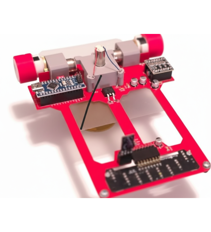 Ağırlık Dengesi: Fotoğrafta görüldüğü üzere ağırlık merkezi (motorlar ve vakum fanı) tekerlek eksenine oldukça yakın. Bu, robotun dönüşlerdeki atalet momentini düşürerek daha kıvrak olmasını sağlar.